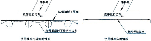 缓冲托辊组重载时会引起皮带下陷,密封效果不好。 |