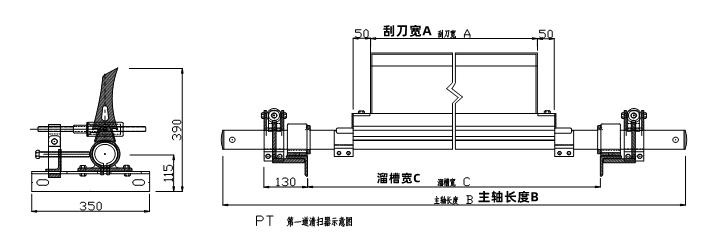 | 型号 | 皮带宽度 | A(刮刀宽) | B(主轴长度) | 重量(KG) | 弹簧组个数 |