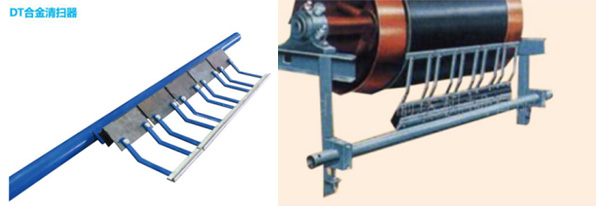 DT合金清扫器与皮带接触的是合金刮刀,靠合金刮刀清楚粘附物料。合金刮刀下是橡胶体,起到缓冲弹簧作用。合金清扫器目前仍是主要的皮带清扫器。
