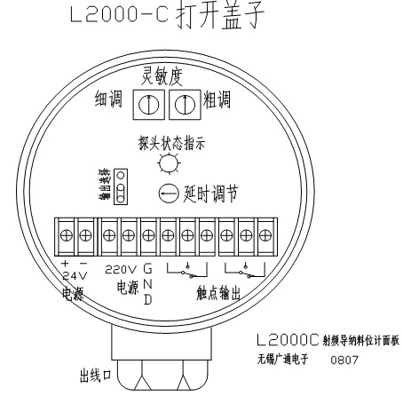 一、概述: 无锡市库搏乐机械科技有限公司(原无锡市广通电子仪器厂)生产的 L2000-C系列射频导纳物位开关是一种新颖的物位测量仪表,它采用(抗粘附)射频导纳技术,克服了电容式物位计不能消除导电挂料影响的缺陷,仪表具有运行可靠,能抗挂料层的影响。L2000-C标准探头中心信号杆采用直径10mm不锈钢,保护套长150mm,总长450mm,坚固实用。平板探头,解决大固体物料冲击棒的问题。L2000C适用于几乎所有工业现场对液体;粉料;块料;高温场合的物位检测。仪表还具有安装方便,免维护,价格低等特点。仪表广泛用于石油、化工、冶金、医药、电力、食品、造纸等工业领域。